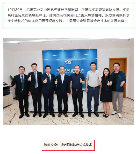 共促尖端技术临床应用!尼德克公司中国总经理一行莅临太阳成tyc122cc参访交流