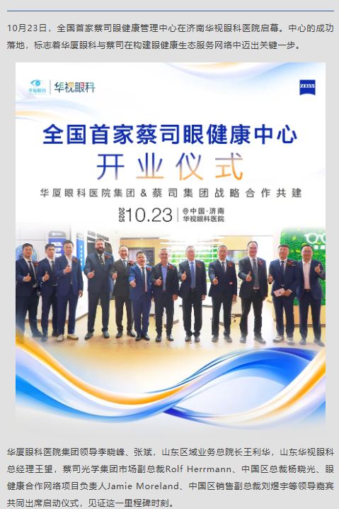 共启眼健康服务新程|全国首家蔡司眼健康中心落户济南华视眼科医院