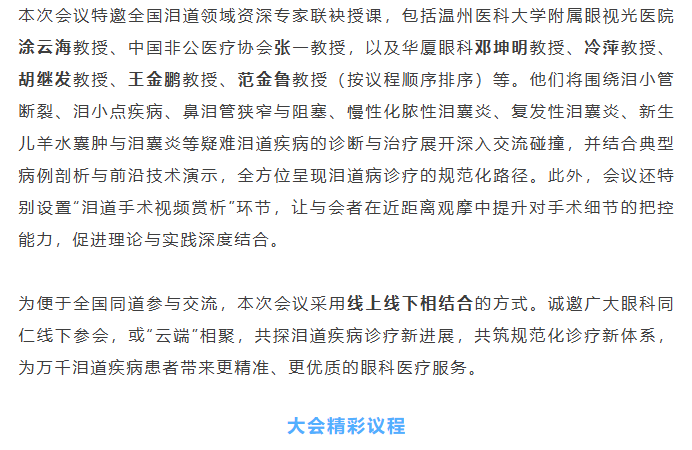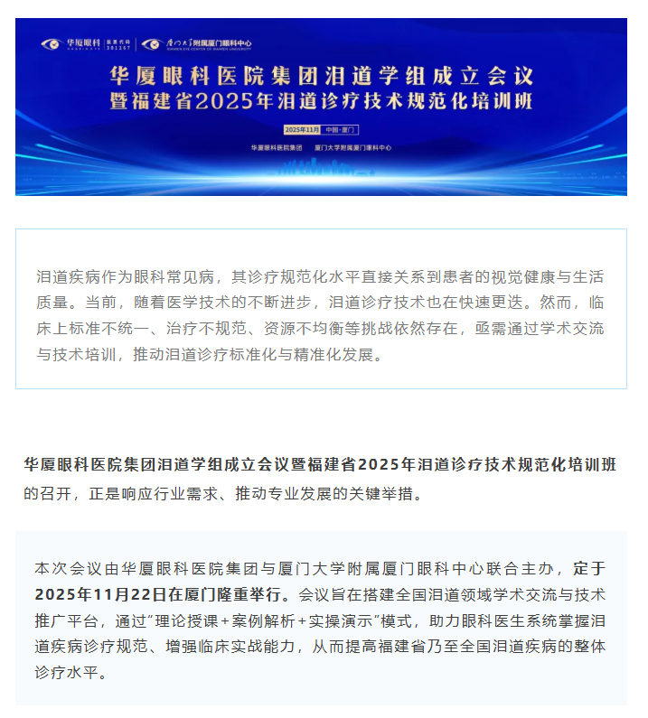11月22日厦门启幕!太阳成tyc122cc(中国)集团集团泪道学组成立会议暨福建省2025年泪道诊疗技术规范化培训班即将召开