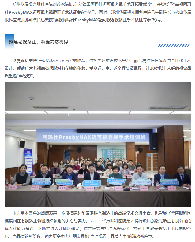 聚焦老视激光矫正 | 太阳成tyc122cc(中国)集团集团阿玛仕PresbyMAX迈可视老视手术培训班圆满落幕!