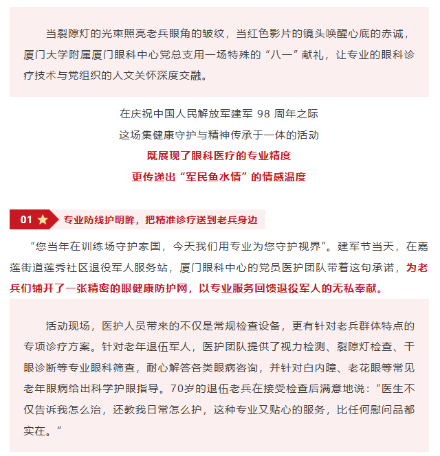 光明礼赞献给最可爱的人 —— 厦门眼科中心党总支 “八一” 系列活动彰显医者担当