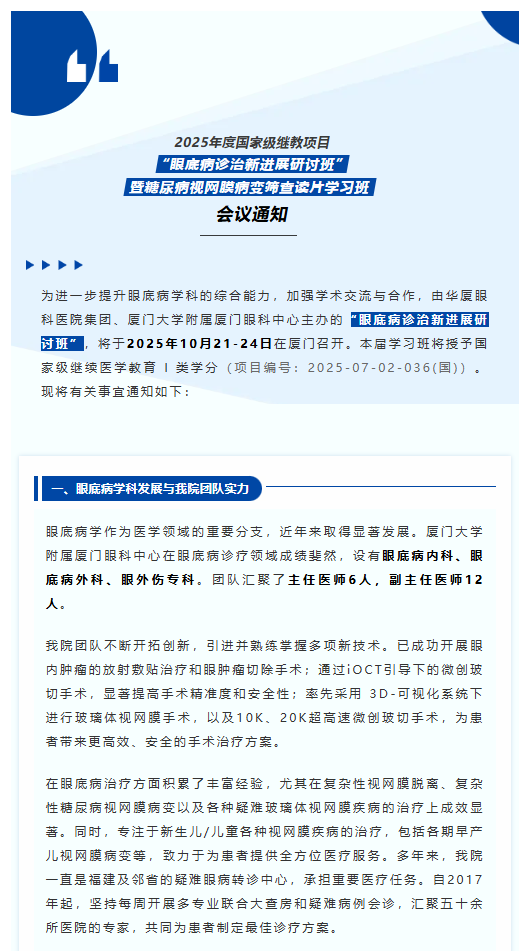 2025年度国家级继教项目“眼底病诊治新进展研讨班”暨糖尿病视网膜病变筛查读片学习班会议通知