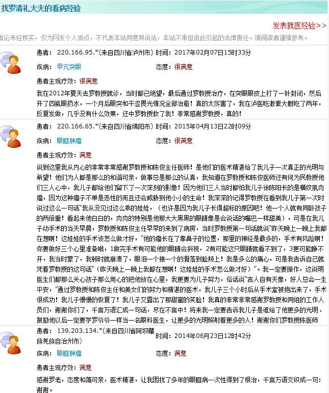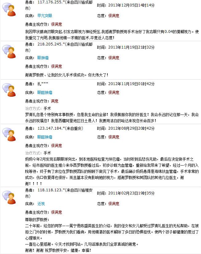 成都太阳成tyc122cc(中国)集团院长陈晓明教授、业务院长罗清礼教授网上患者评价