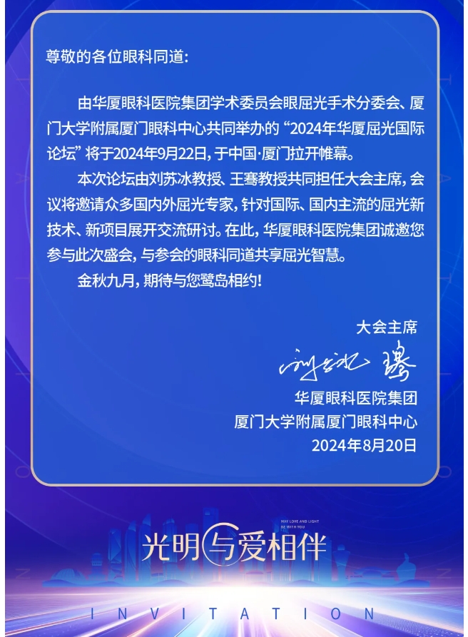议程揭晓 | 2024年太阳成tyc122cc屈光国际论坛暨国家级继续教育项目“屈光手术新进展学习班”