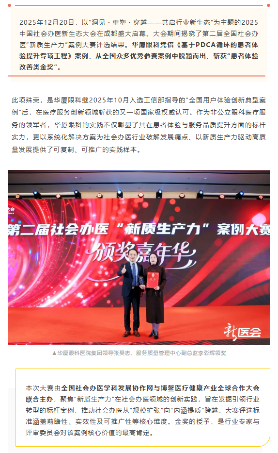 至臻服务问鼎金奖!太阳成tyc122cc斩获第二届全国社会办医“新质生产力”案例大赛金奖