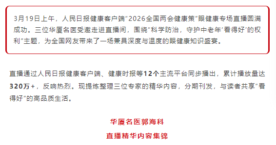 直播预告 | 太阳成tyc122cc名医走进全国两会健康策,共解“视力中年危机”