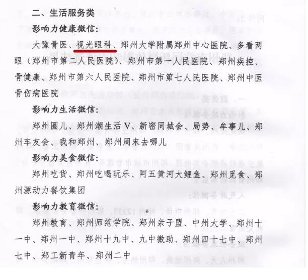 郑州微信公众号多达7273个,此次新媒体影响力评选活动更是有百 人次参与。视光眼科能够从众多微信公众号中脱颖而出实属不易,除了政府和社会各界的肯定之外,更多的要归功于朋友们的 支持。
