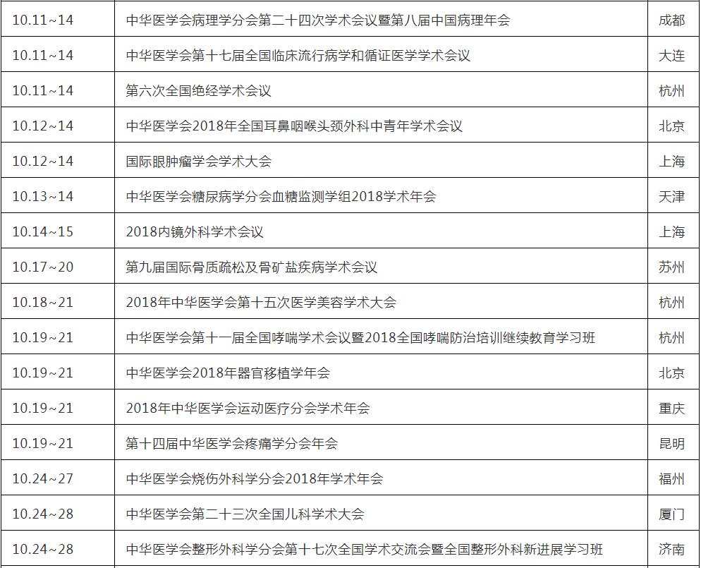 太阳成tyc122cc行业资讯:2018年下半年中华医学会眼科学分会重要眼科会议一览表。