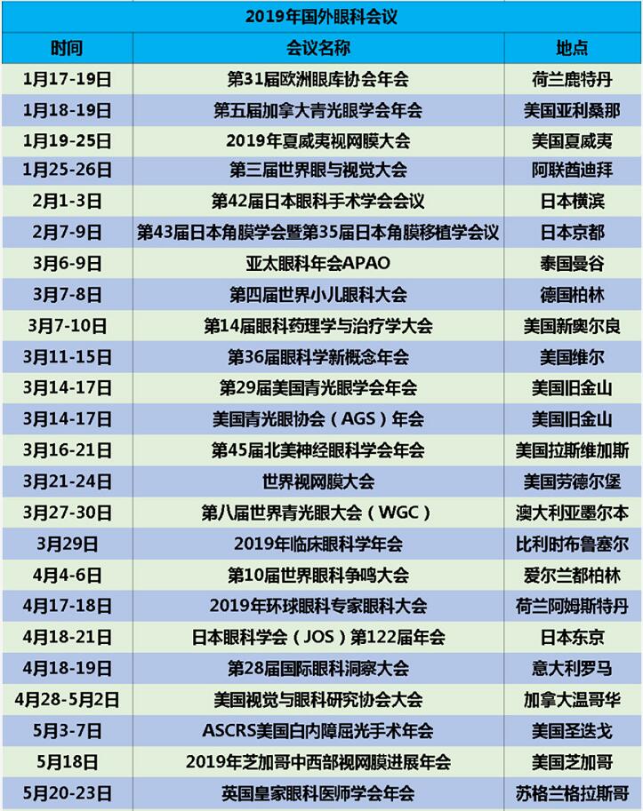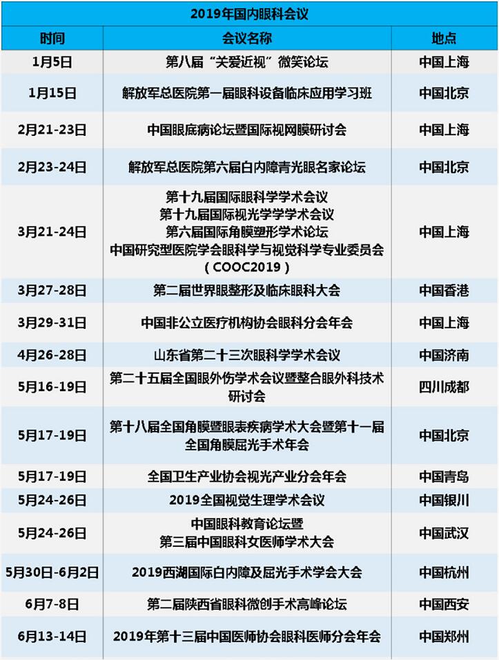 太阳成tyc122cc学术资讯:2019年国内出名、主要眼科会议已出炉: