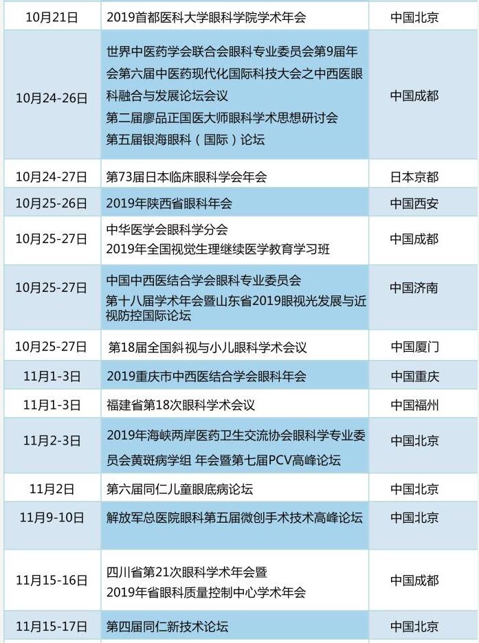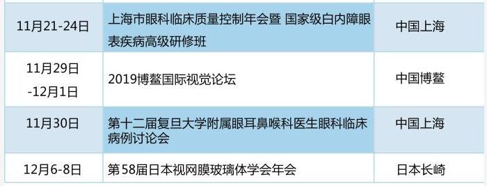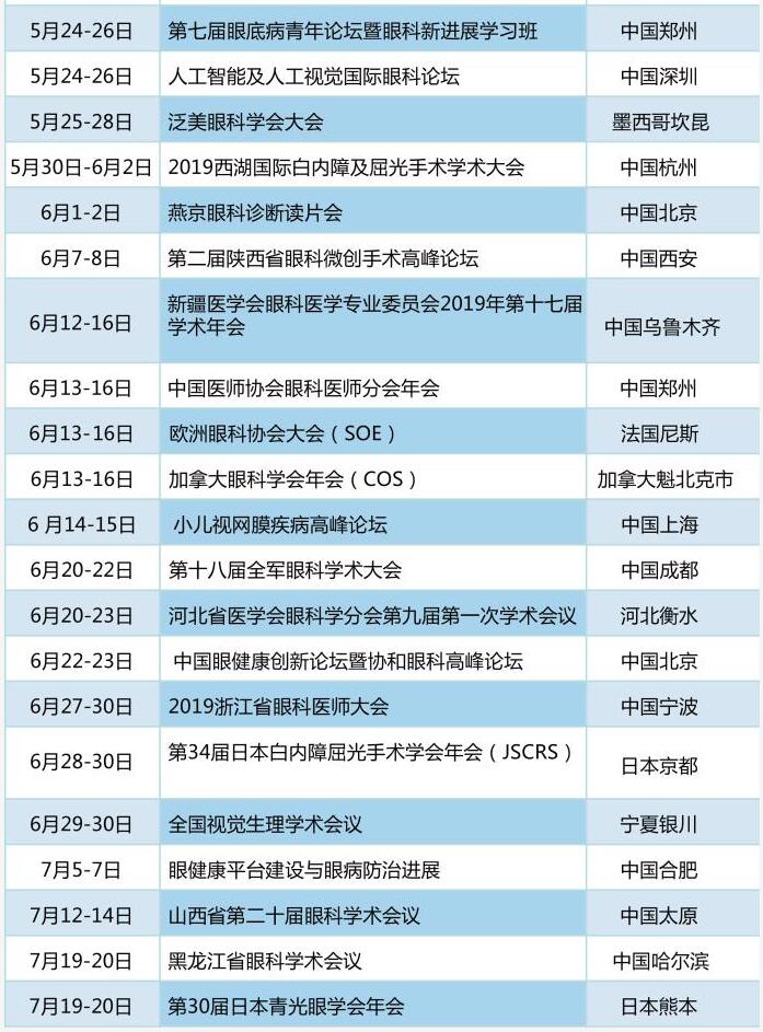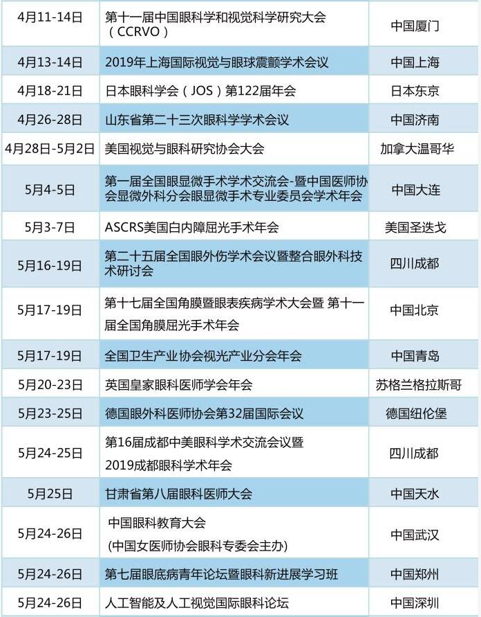 太阳成tyc122cc学术资讯:《眼界》2019年国内外眼科会一览表