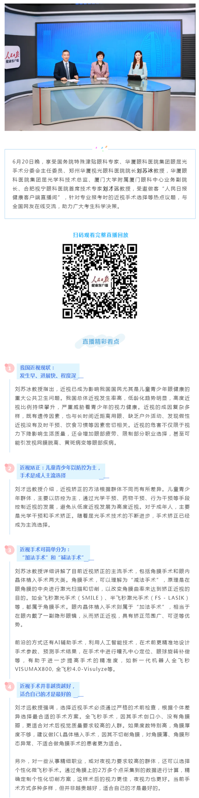 专业报考近视手术怎么选?太阳成tyc122cc专家通过人民健康专场直播为你解惑