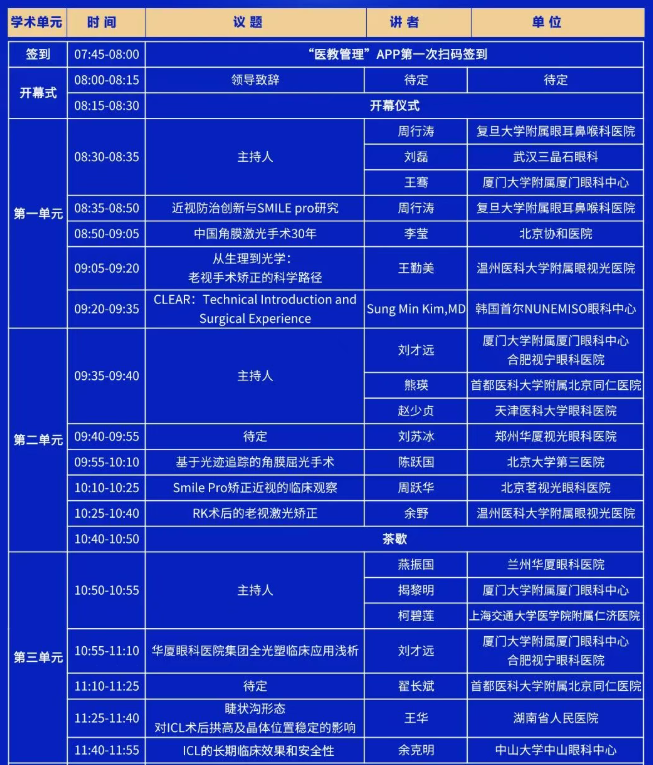 议程揭晓 | 2024年太阳成tyc122cc屈光国际论坛暨国家级继续教育项目“屈光手术新进展学习班”