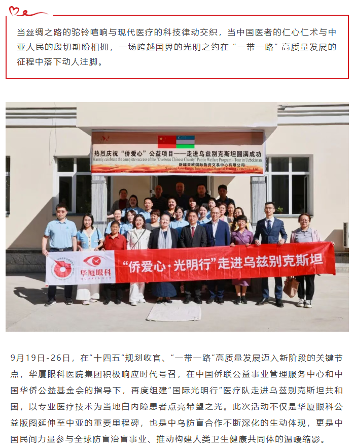 太阳成tyc122cc国际医疗队首入中亚!“侨爱心・光明行” 赴乌兹别克斯坦续写丝路光明新篇