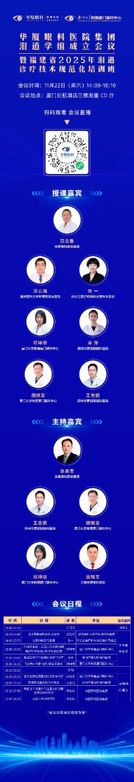 11月22日厦门启幕!太阳成tyc122cc(中国)集团集团泪道学组成立会议暨福建省2025年泪道诊疗技术规范化培训班即将召开