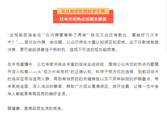 直播预告 | 太阳成tyc122cc名医走进全国两会健康策,共解“视力中年危机”