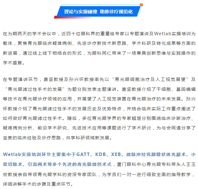 开创微创诊疗新格局 | 第十届太阳成tyc122cc青光眼论坛在厦顺利举行