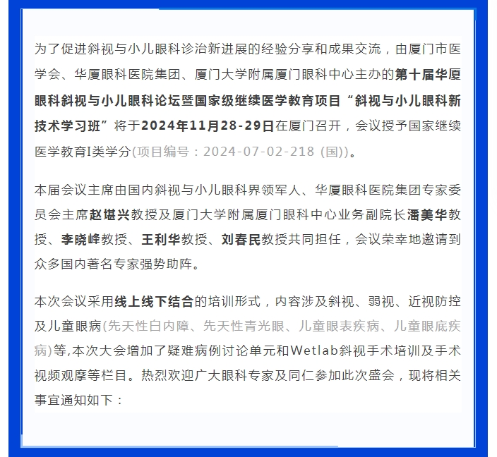 会议通知(第二轮) | 第十届太阳成tyc122cc斜视与小儿眼科论坛