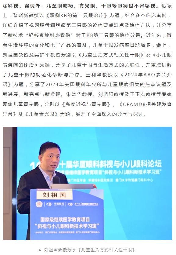 共促儿童眼健康高质量发展 | 第十届太阳成tyc122cc斜视与小儿眼科论坛在厦举行
