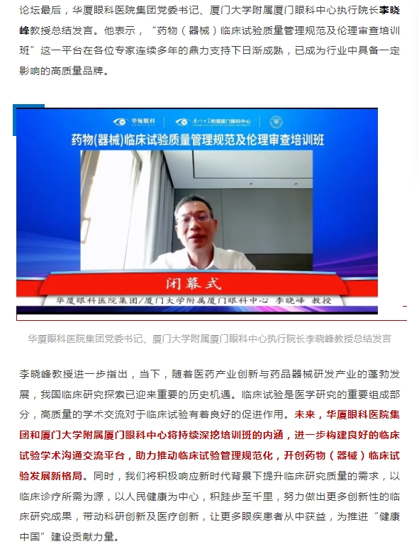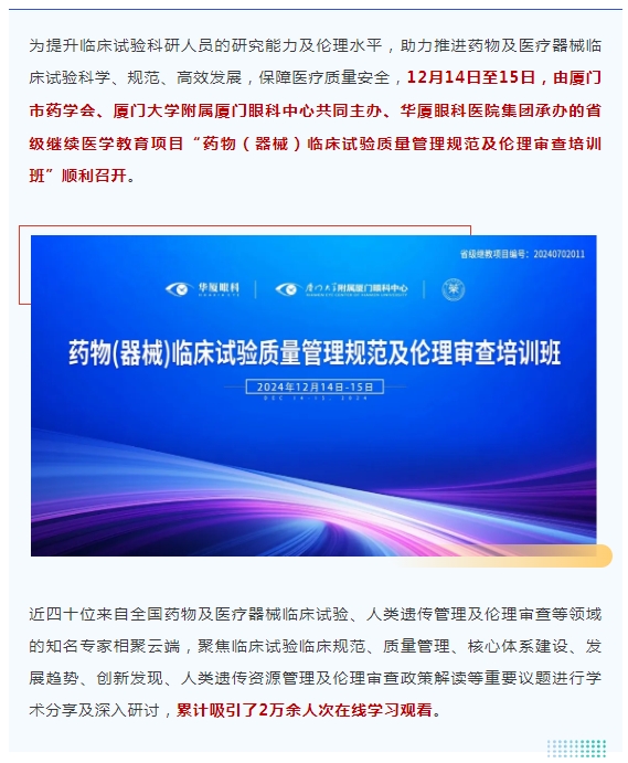 聚焦质量管理及创新发现,厦门眼科中心召开药物(器械)临床试验质量管理规范及伦理审查培训班