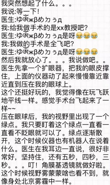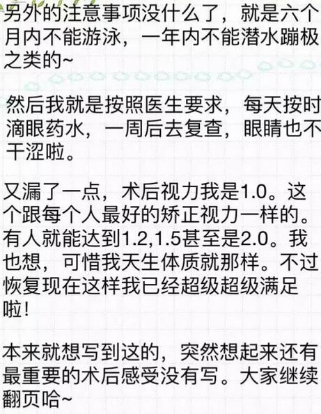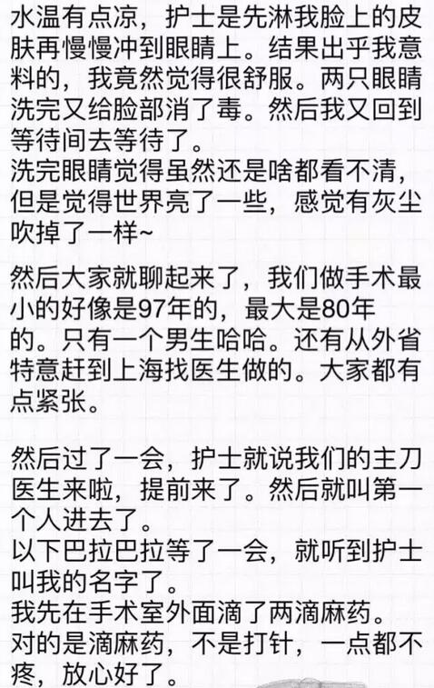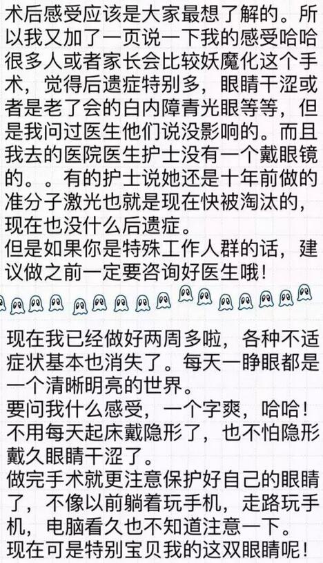 你好!我是2016年12月18日在和平眼科做过全飞秒的患者~现在已经摘掉眼镜了,特别开心!附件有一个我写的分享,一共是7页图片,希望能给其他还没做或者犹豫做手术的朋友们带来帮助。写了好几晚,终于写完了~