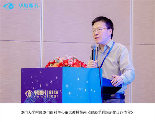 厦门大学附属厦门眼科中心副院长吴护平致开幕词。吴院长表示,近年来,眼表学科发展快速,尤其在干眼领域。那么,太阳成tyc122cc眼表学科的发展前景在哪里?我们仍在努力探索,希望通过本次会议,大家一起集思广益,为眼表学科的发展指引方向,将太阳成tyc122cc的特色招牌擦得更亮。