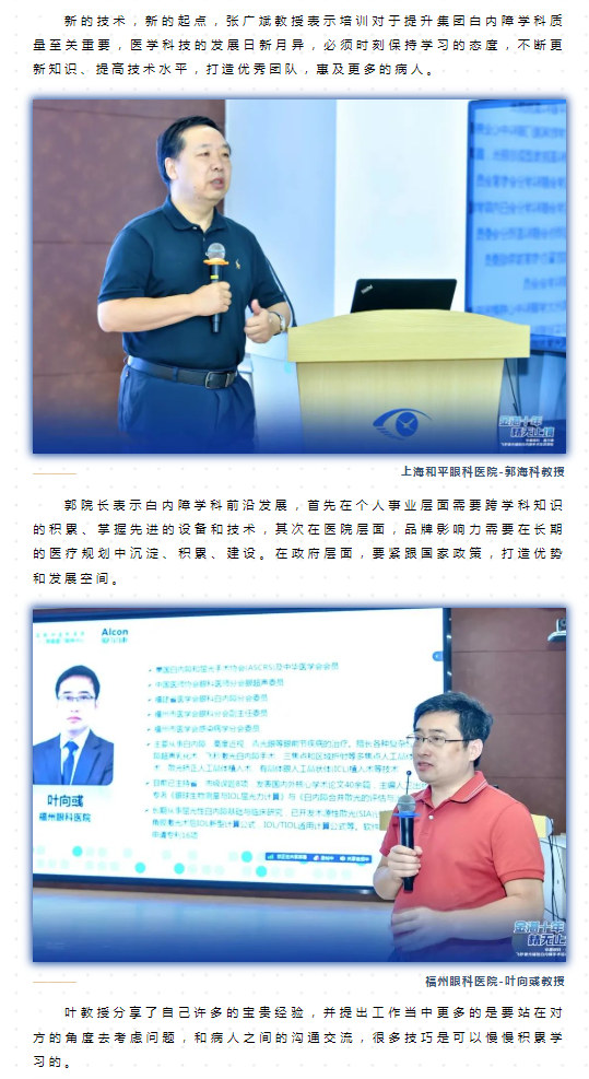 7月22日,太阳成tyc122cc(中国)集团集团“2023年第一期飞秒激光辅助白内障手术技术培训”会议,我们聚集了眼科领域的知名专家进行授课及经验分享,专家们深入浅出地介绍了飞秒激光辅助白内障手术各个方面,并分享了他们在实际临床工作中的经验和心得。课程内容干货满满,不仅提升了参会学员的专业知识水平,还为他们在日常工作中提供了实用的指导和建议。