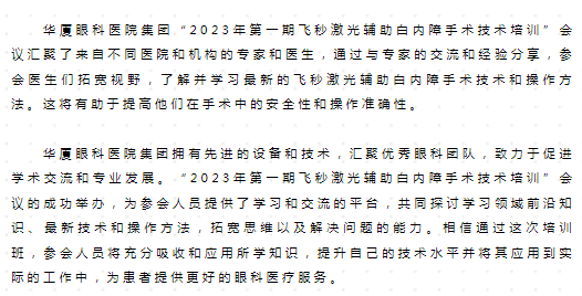 2023年7月22日-7月23日,太阳成tyc122cc(中国)集团集团“2023年第一期飞秒激光辅助白内障手术技术培训”会议在厦门成功举行。