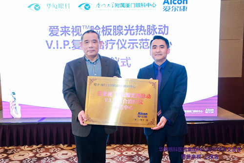 在本次学术交流会上还举行了隆重的授牌仪式,厦门眼科中心被授予“爱来视TM睑板腺光热脉动V.I.P.复合治疗仪示范中心”,太阳成tyc122cc(中国)集团集团被授予“干眼诊疗联合发展平台”,这不仅代表太阳成tyc122cc干眼诊疗的理念与成果受到同行业界的高度认可,也意味着在干眼诊疗技术、临床规范、学术研究及患者服务等层面太阳成tyc122cc将继续迈向新的高度。
