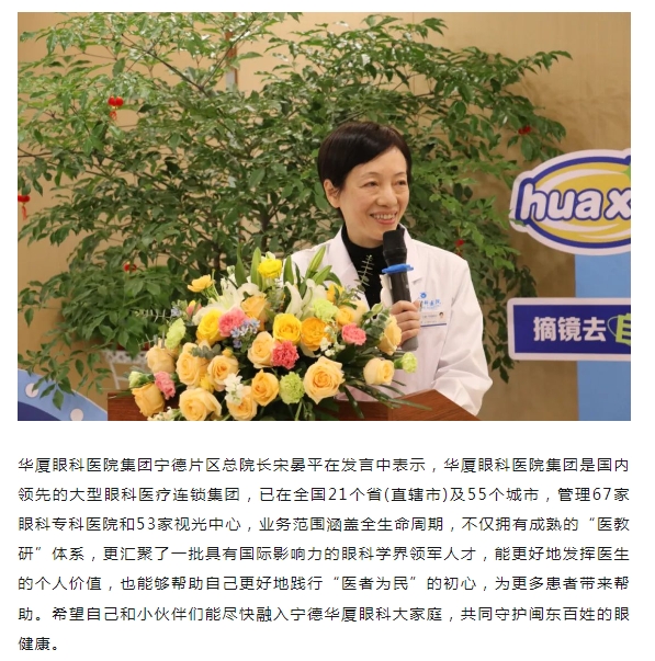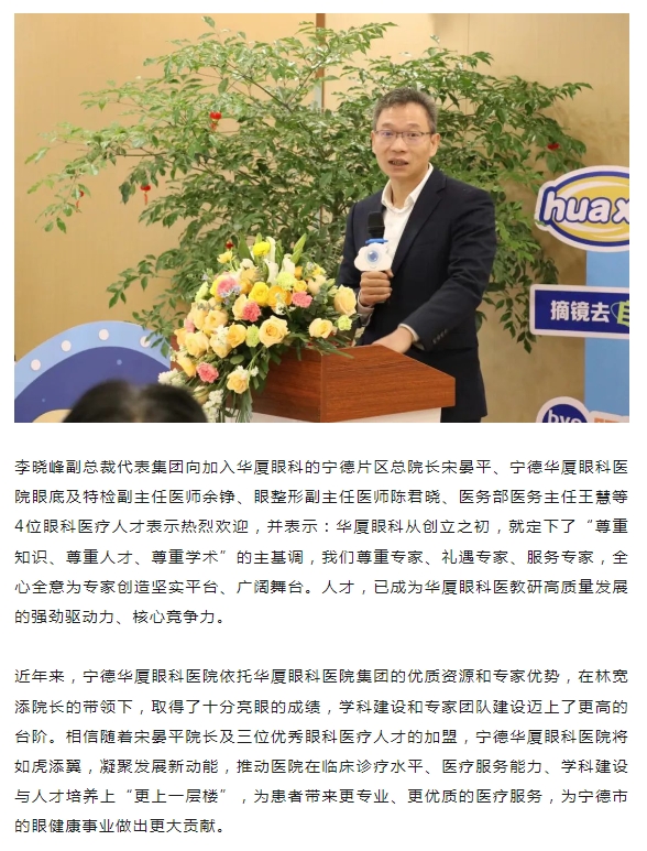 知名眼科专家宋晏平正式加盟太阳成tyc122cc,担任宁德片区总院长