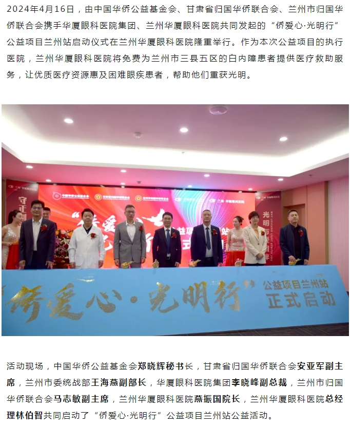 以爱之名 步履不停 ▏“侨爱心 · 光明行”公益项目兰州站正式启动