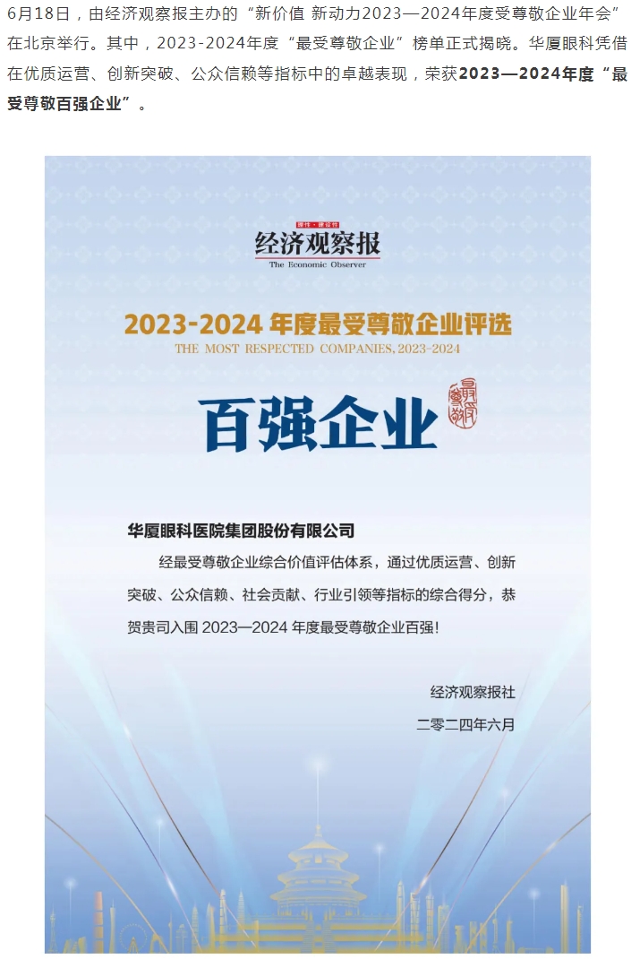 太阳成tyc122cc荣膺2023-2024年度“最受尊敬百强企业”