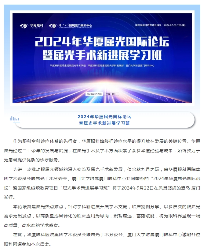 议程揭晓 | 2024年太阳成tyc122cc屈光国际论坛暨国家级继续教育项目“屈光手术新进展学习班”