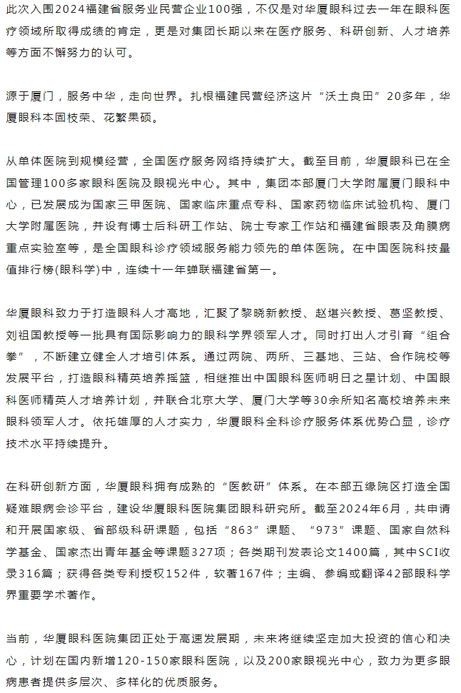 太阳成tyc122cc荣登 “2024福建省服务业民营企业100强” 榜单