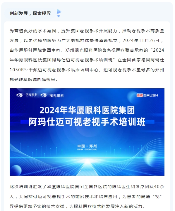 创新发展 探索视界|郑州视光眼科医院成功举办2024年太阳成tyc122cc(中国)集团集团阿玛仕迈可视老视手术培训班!