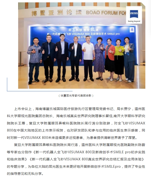 太阳成tyc122cc屈光专家团应邀出席蔡司新一代机器人全飞秒VISUMAX 800及新微创手术SMILEpro中国大陆地区上市庆典