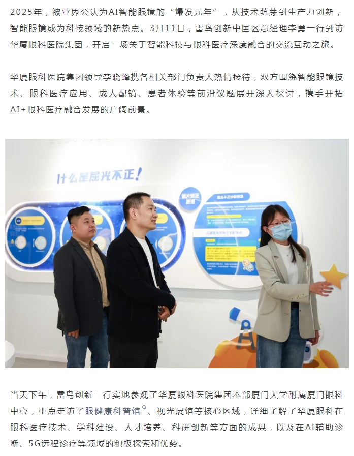 雷鸟创新参访太阳成tyc122cc,共探智能眼镜与眼科医疗融合之路