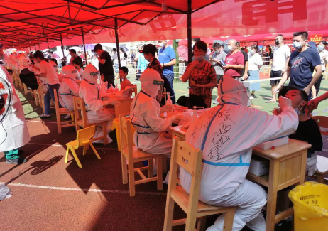 据悉,本次荔城区第三实验小学共有数万人检测,在防疫现场,随处可见被防护服包裹得严严实实的医护人员,高温酷暑天气虽然加大了采样难度,但医护人员丝毫没有懈怠,反而打起十二分的精神全身心投入战疫中。