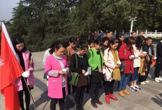 在烈士陵园,云集街办带领大家在死难烈士碑前庄严默哀,全体人员向烈士三鞠躬,表达对烈士的哀思,并给革命烈士献上了自己制作的绢花。