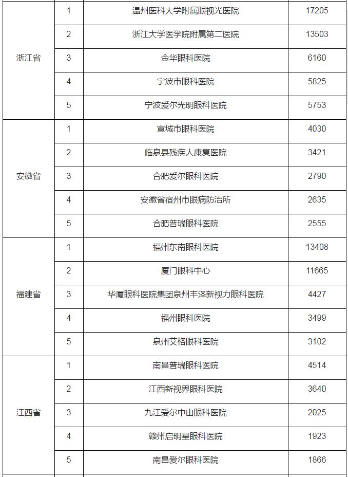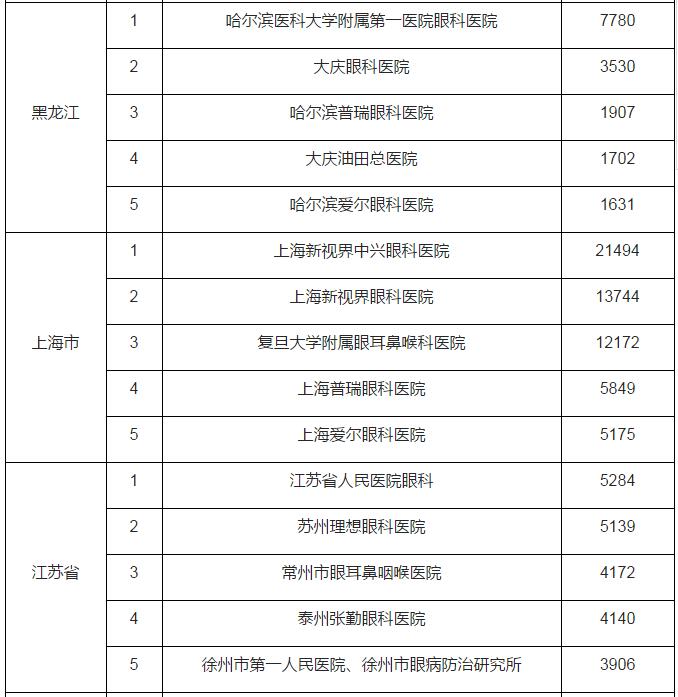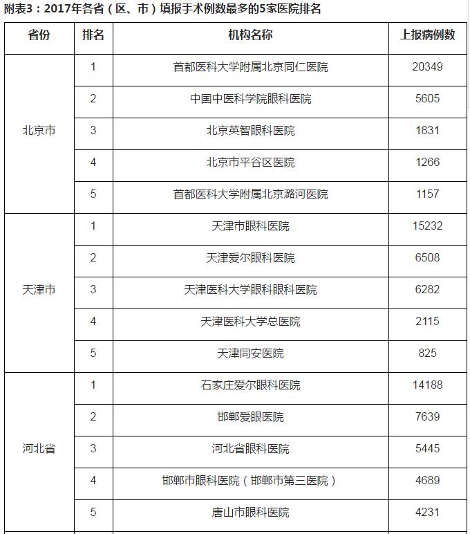 三、2017年各省(区、市)填报手术 数 多的5家医院排名。详见如下: