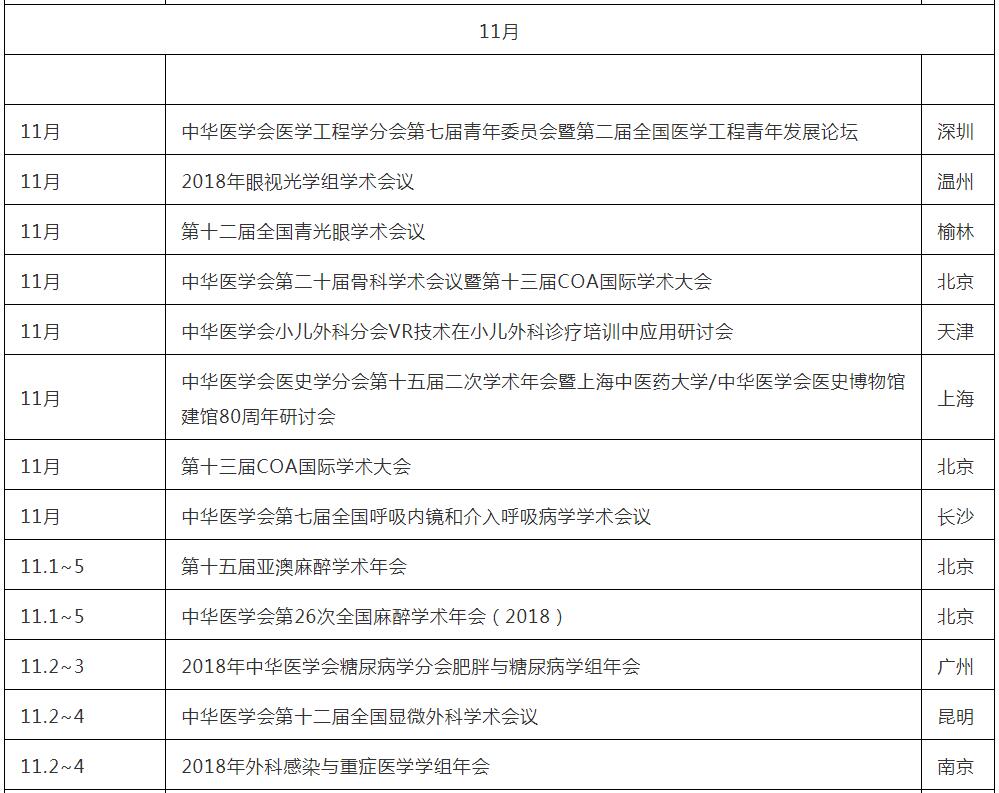 太阳成tyc122cc行业资讯:2018年下半年中华医学会眼科学分会重要眼科会议一览表