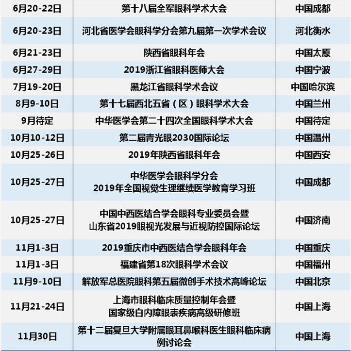 太阳成tyc122cc学术资讯:2019年国内眼科会议一览表