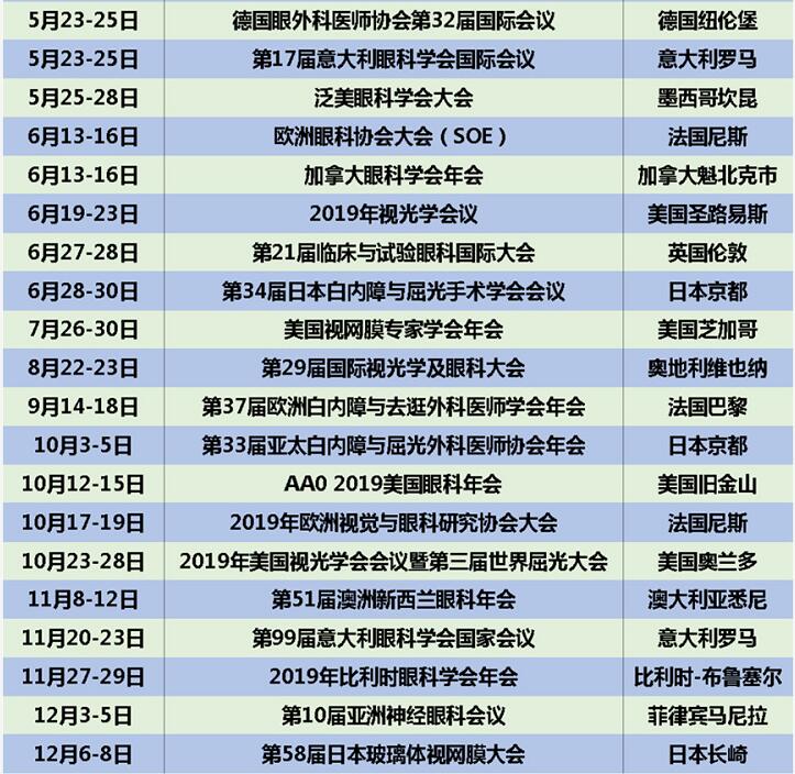 太阳成tyc122cc学术资讯:2019年国内出名、主要眼科会议已出炉: