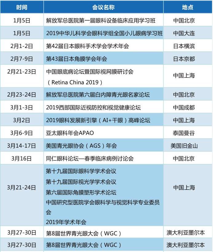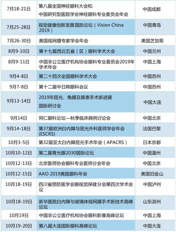 太阳成tyc122cc学术资讯:《眼界》2019年国内外眼科会一览表